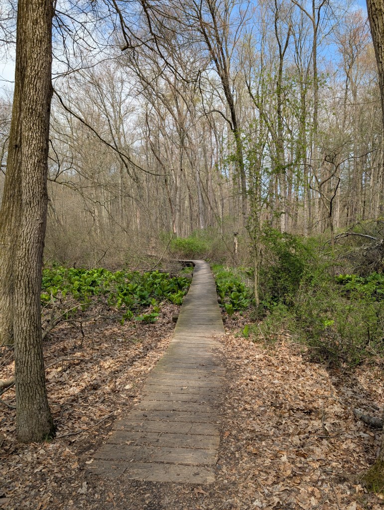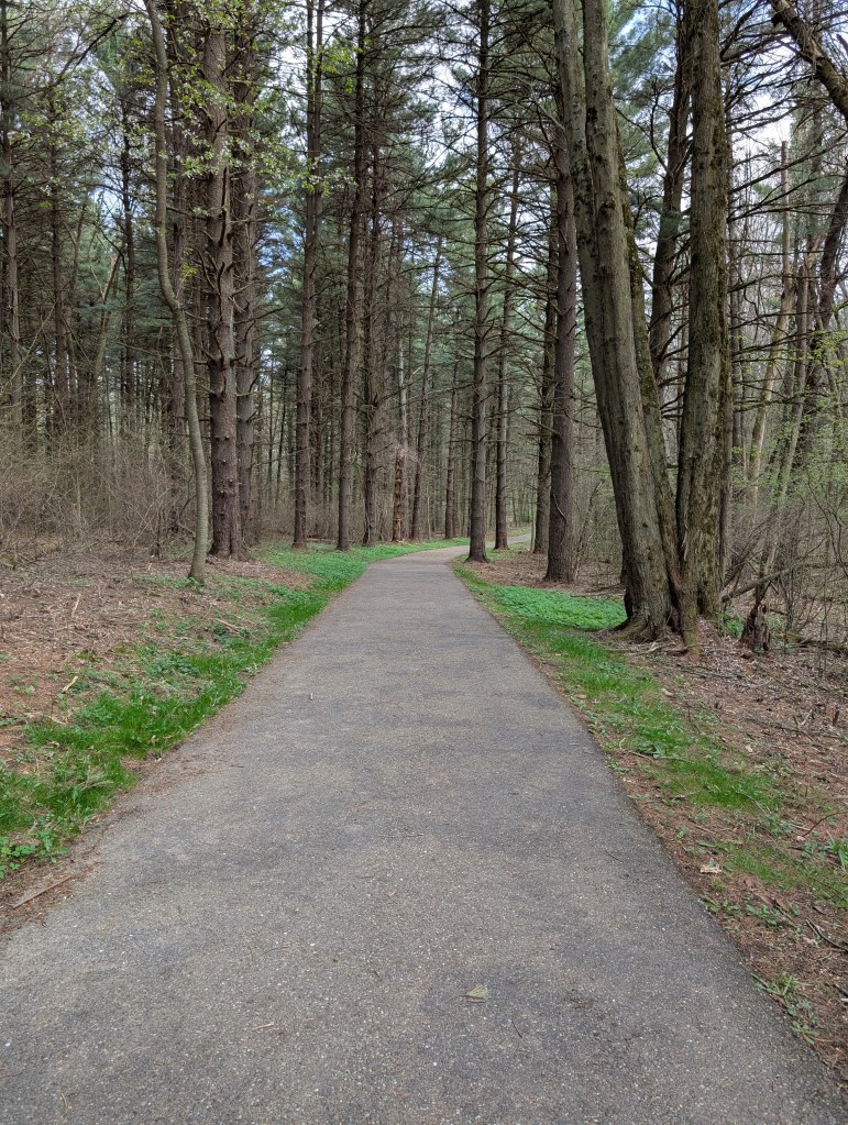 I think the really cold weather has finally passed here (*fingers crossed*) and it’s so nice to be out on a beautiful spring morning at one of our beautiful local state parks. I used to bring the kids here quite a bit when they were smaller; there’s a longish paved path which is good for strollers, and a pretty garden with lots of sidewalks to run around on. The kids called it “the deep dark woods” and I still called it that in my head when I was deciding where I wanted to walk.